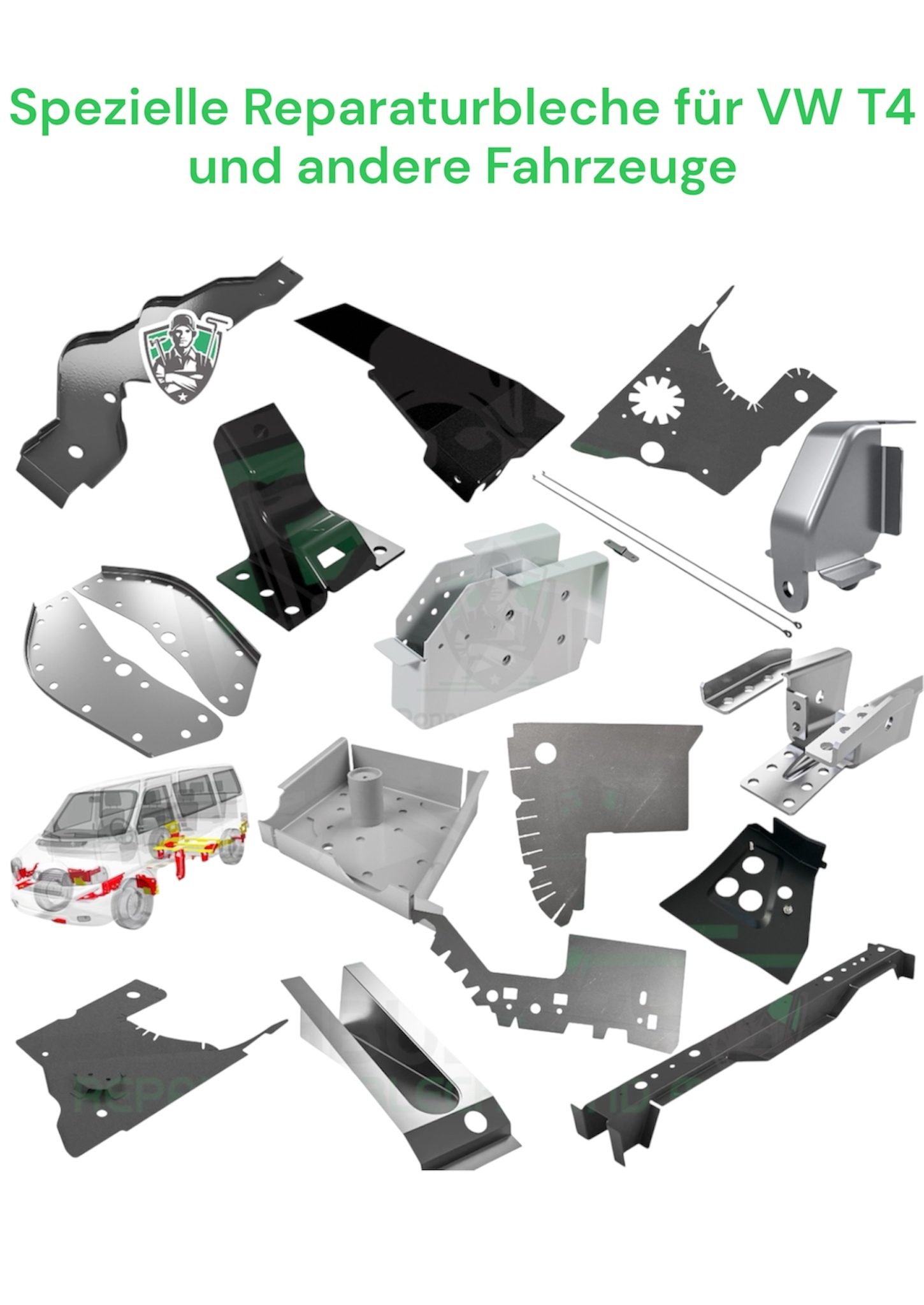 Wir sind spezialisiert auf die Herstellung und den Verkauf von hochwertigen Reparaturblechen für den VW T4. Unsere Reparaturbleche sind die ideale Lösung, um beschädigte Bereiche an Ihrem Fahrzeug zu reparieren.